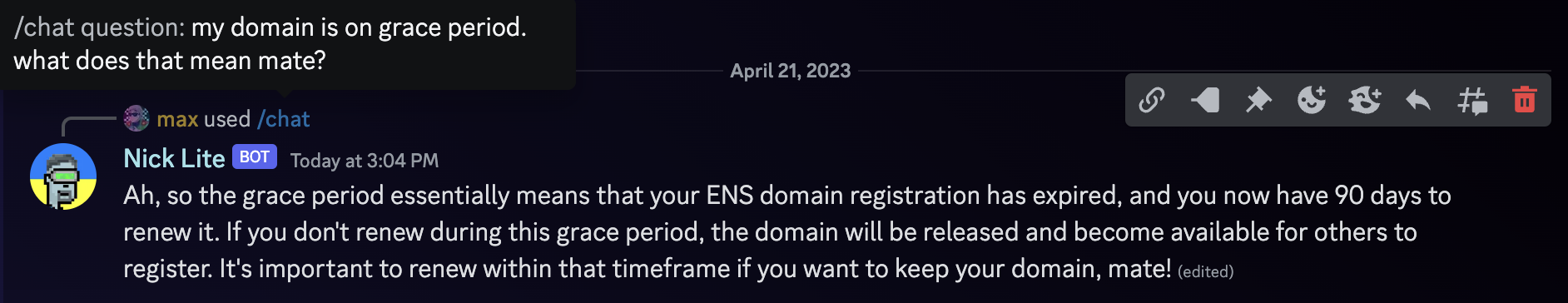 You can check out the extensive ENS docs, of course, but if you have specific questions worth answering, you can ask Nick Lite - a natural language model trained by us on the ENS docs, as well as Nick.eth himself!